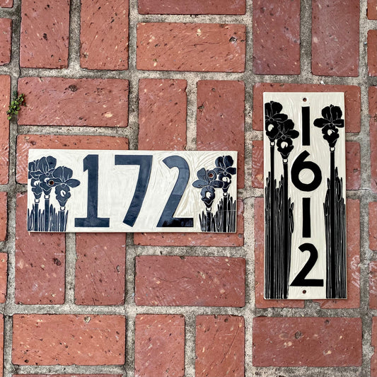 Iris Address Sign - Sgraffito House Number Plaque/Tile