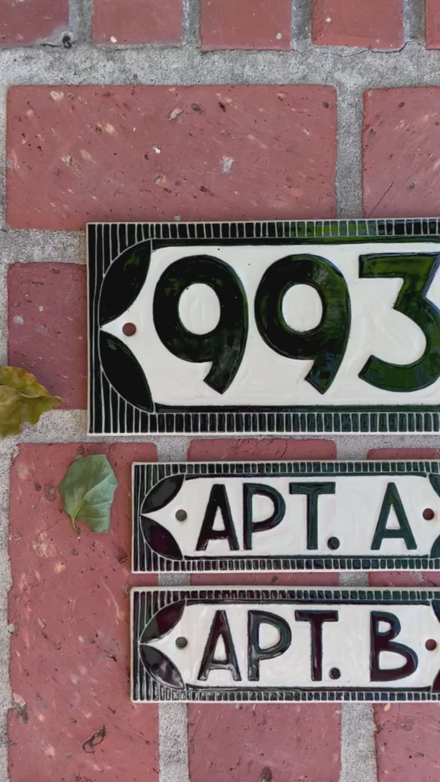 Handmade ceramic address tiles designed for exterior use. Each tile is high-gloss, kiln-fired, and built to withstand sun, rain, and freezing temperatures. Made in New Orleans by Rachael DePauw Pottery, a woman-run small business.